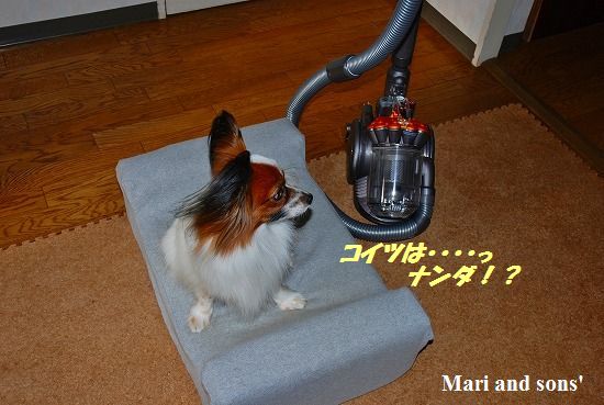 我が家では掃除機は『ソウジキ怪獣』と呼ばれて 特に康太に恐れられています 新しいソウジキ怪獣の登場に康太も戸惑い顔でした |