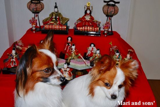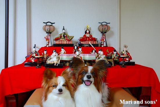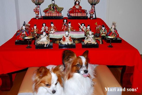 一昨年は康太が未だ6ヶ月でしたから イタズラしないかなと案じつつもリビングに飾って 案の定 右大臣さんの烏帽子を食べてしまったというハプニングはありましたけどお雛様や飾りをイタズラする事はありませんでした |