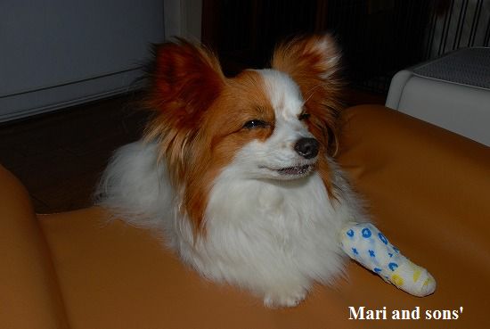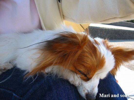 おかあさんの膝で寝入ったまりです |