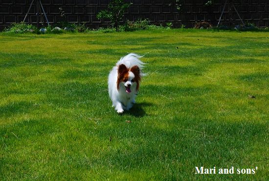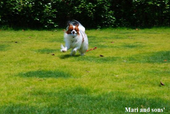 実はお祖父ちゃんの四十九日法要を終えた翌日 南房総のお祖父ちゃんの田舎へ挨拶をするため オバアチャン 叔母さん オジちゃん夫婦達と皆で出かけたのです 朝御飯の後は楽しみにしていた自家用ドッグラン=実は 叔母さんの別宅の前に広がる芝生 なのですが ここで思いっきり手足を伸ばさせてもらうのです |