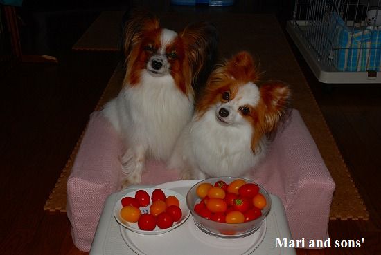 お母さんも毎日20個は丸齧り まりと康太も皮と種を取ったものを毎日1個づつ食べていますが それでも7月中旬からの連日の大収穫で生では食べきれないので ジャムやトマトソース 砂糖と生姜汁に浸けたデザートを作ったりもして楽しんでいます |
