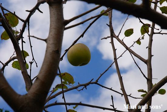 ところで 毎年楽しみにしている我が家のリンゴですが 去年大豊作だったフジも今年は何故か全く花さえ付かず たった1つだけ小さいのがなっているだけです |