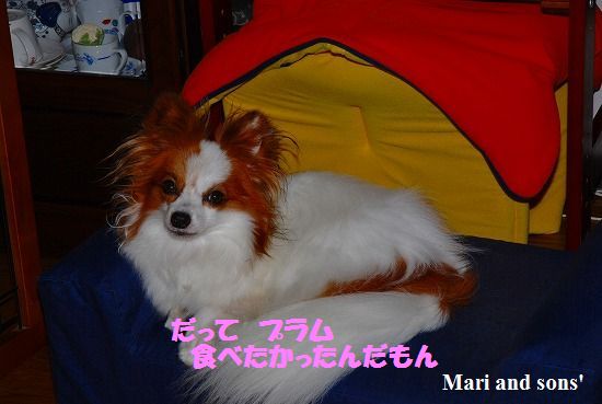 超食いしん坊のまりは おとうさんの手から滑り落ちたプラムの種を間髪おかずに飲み込んでしまいました 奪取した物が食べ物ではない時は直ぐに離すのですが 食べ物となると『取られる前に食べてしまおう』とばかりに これまでも生の野菜を始め 大きな塊のメロンやリンゴなど数々の落し物に味を占めていました
