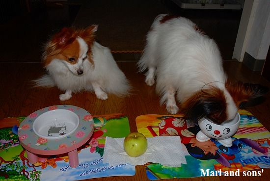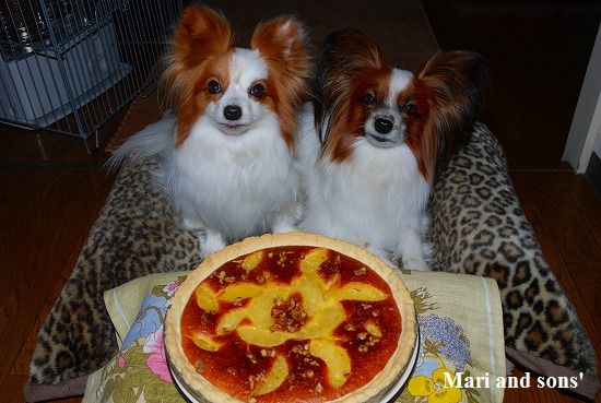 まりは周りを汚さず上手にお皿の上で食べてくれるのですが お坊ちゃまの方はねぇ・・・・ 一切れ咥えては椅子の上でモグモグ 今日はミートローフケーキを其々3分の1づつとジュレを半分づつ 二人共お腹一杯! 毎日お誕生日だといいのにね♪ |
