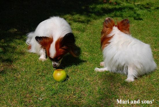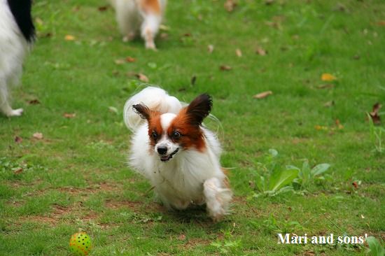 康太も勿論皆とは一緒に遊べず 自分だけでボールを追いかけて... でもカール君の息子のジュニア君が一緒に走ってくれてました |