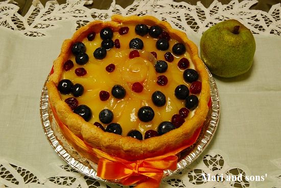 クックパッ○で見つけたクリームチーズカスタードの上に木苺・イチゴ・ブルーベリーを隙間無くタップリ載せました