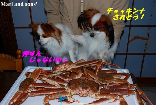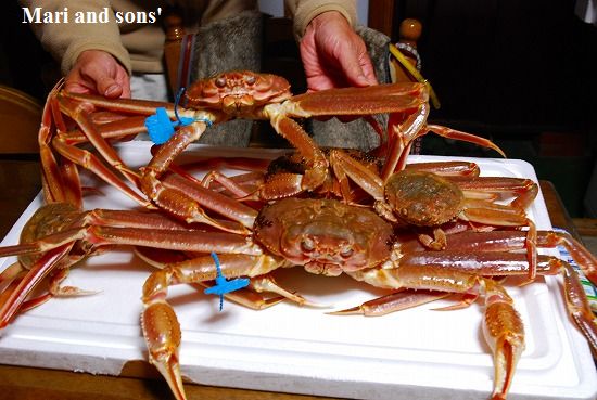 更に翌週末はおとうさんの実家から松葉カニ様ご一行のご来臨です 眩いブルーの指輪は正真正銘ブランドの証!!! |