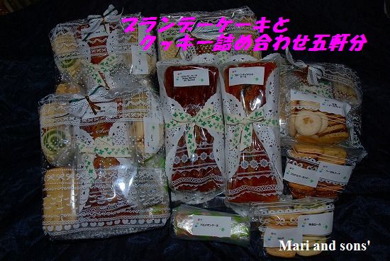 お彼岸には房総の田舎に行くので親戚5軒への手土産にブランデーケーキとクッキー7種もの詰め合わせを5軒分も作りました |