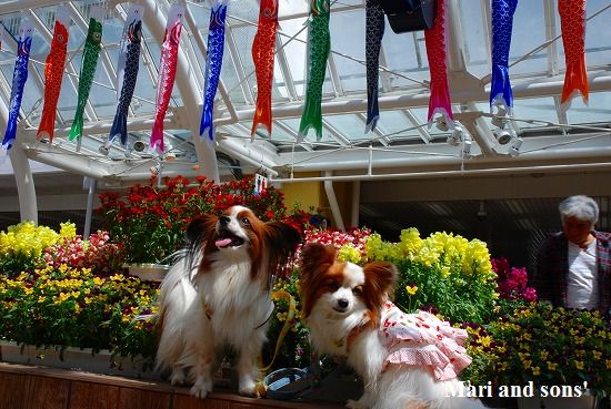 エスカレーター沿いには鯉のぼりも飾られてお出掛け気分を盛り上げてくれました 康太も嬉しそうに見上げています |