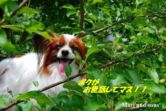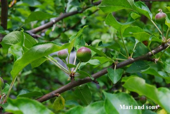 今春大きな花が沢山咲いてしっかりした実を付けてくれたリンゴのムツ 去年までは夏前にポロポロと落果していました |