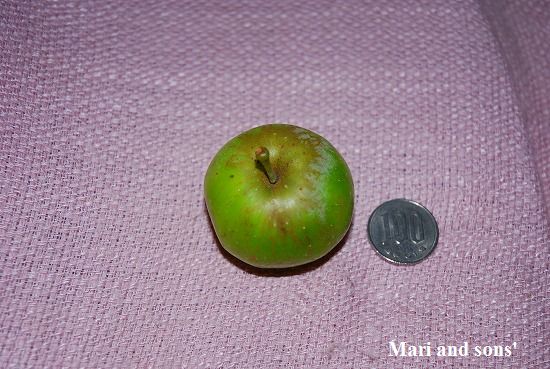 先月期待を掛けたリンゴの実がこんな小さい状態で落ちてしまいました |