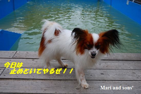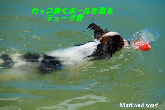 多分皆の中で一番プール遊びを待ちかねていたのが エルママさん家のデューク君でしょう 相棒のラック君と一緒に自分でボールをプールに落としては拾いに行くプール大好きっ子です |