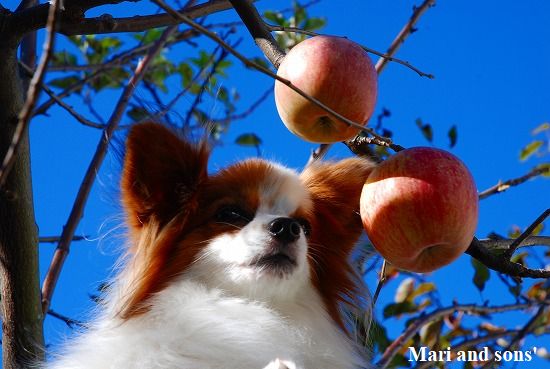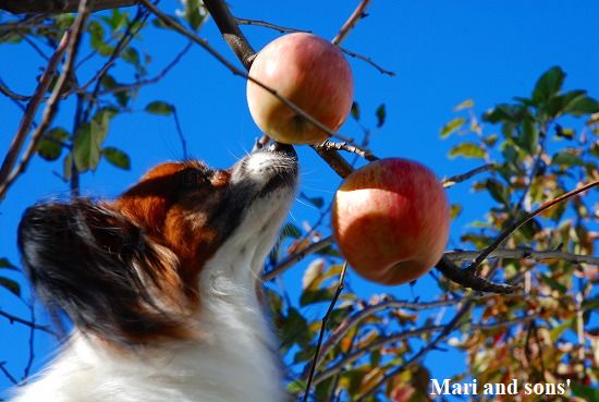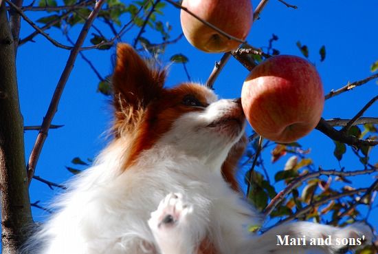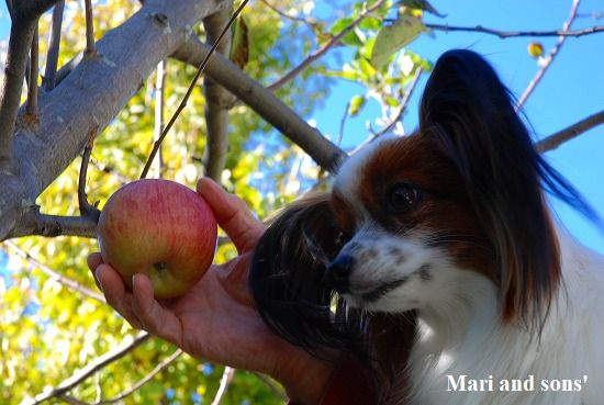 我が家のリンゴが今年も実をつけて赤く色付きました |