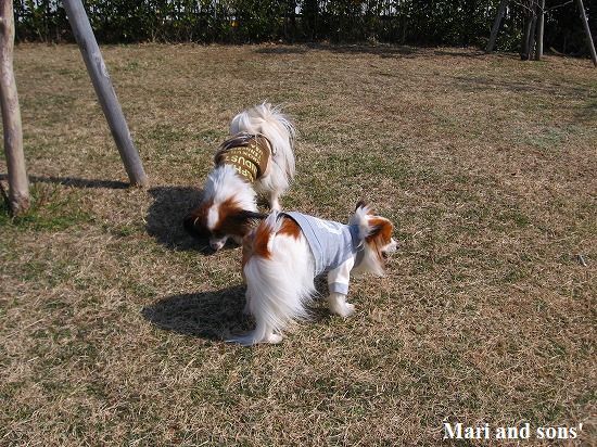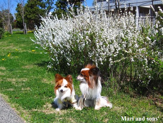 春の ある一日の まりと康太でした |