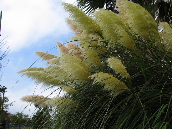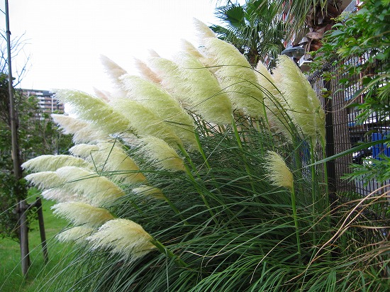なんと こんな暑さ続きの毎日だったのに 道端にパンパグラスが穂を大きく風に揺らせていました |