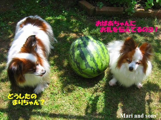 そのラッキーがありました おとうさんのお母さんから 季節の初物 スイカ それもう〜んと大きなものが送られてきたのです