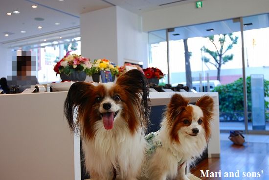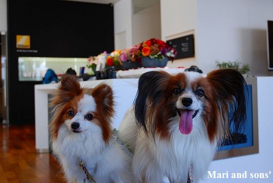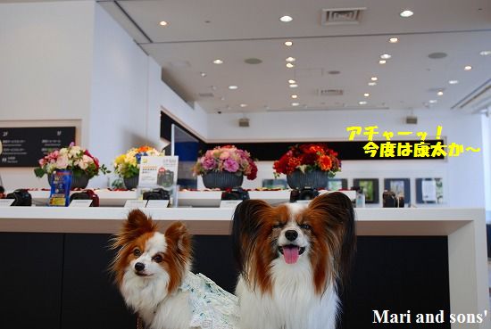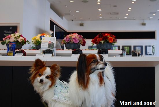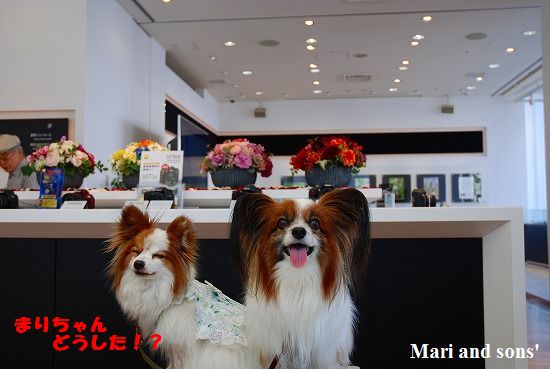 係りの人に聞くと ペットも抱っこであれば受け入れOKとのことで持参のお立ち台で 修理品の受け取りまで待たせてもらいました 修理品を受け取っても おかあさんの探究心は停まらなかったので おとうさん まりたちを相手に修理完了の具合確認を含めて 店内で記念撮影です |
