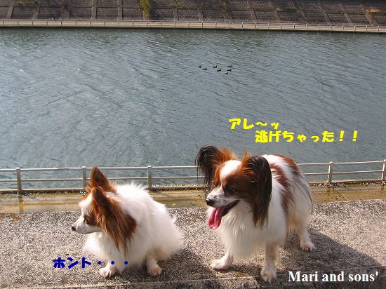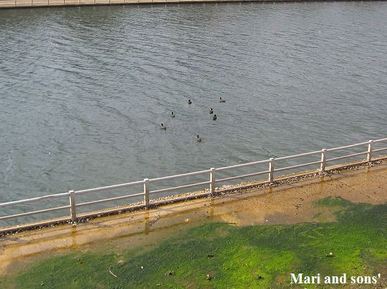 ふと 散歩道の傍の護岸を見たら なんと冬の使者 水鳥がやってきていました |