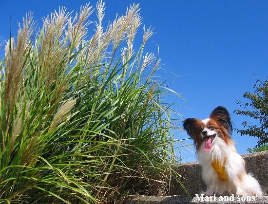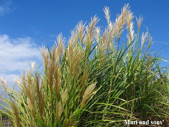 いつものお散歩通りに 秋の代表選手 ススキが穂を風に揺らせていました