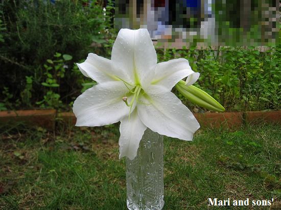始めは 香りも今ひとつと書きましたが その後二日ほどすると得も云われぬ香りが飾っておいた玄関に漂い 出入りの際にとても気持ちの良い空間としてくれました やはり 花開いてから暫くしないと香りも発たないものなのでしょうネ 今回は まりも康太も嫌がりもせず写真に納まってくれましたので 9月の追記に重ねてお知らせしました 因みに 写真で印象がおかしいとお感じの方もいらっしゃるかもしれません 熟した花粉で汚れないよう あらかじめ おしべは全て取り除いるためだ とご理解ください |