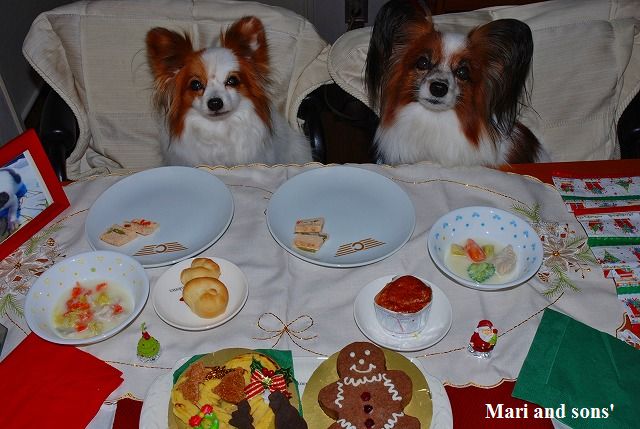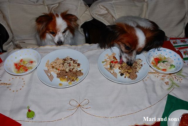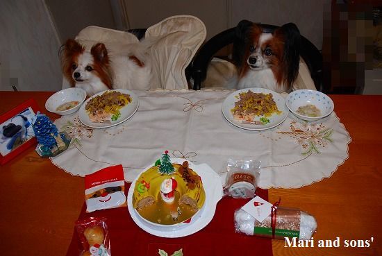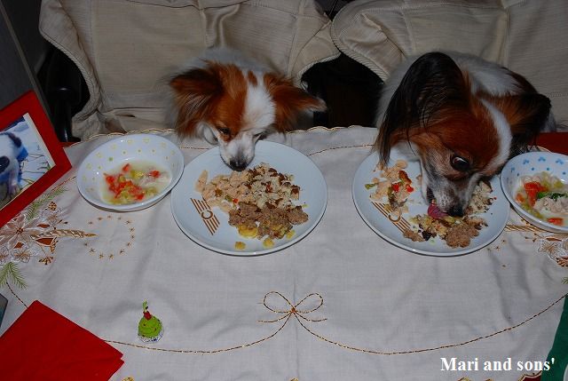 上の写真は例年のクリスマスのディナーでのものですが この時は二人ともいつに変わらぬ食欲を示してくれて私たちをあきれさせるとともに喜ばせてくれていました |