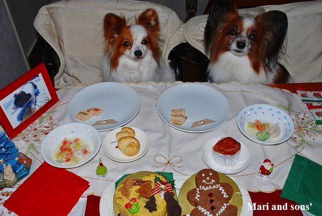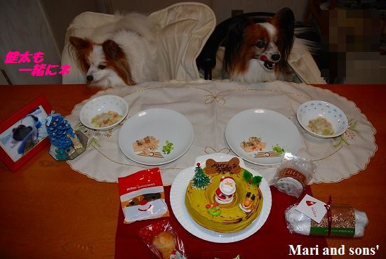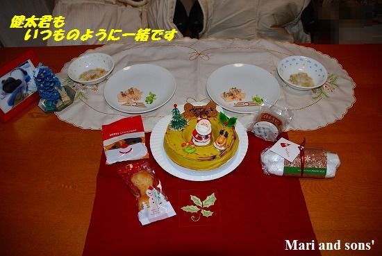 今年もミートローフのケーキを頼んだのですが 今回は馬ではなく鹿肉のミートローフです テーブルには康太の弟 健太君の遺影も飾り クリスマスの食事会です |
