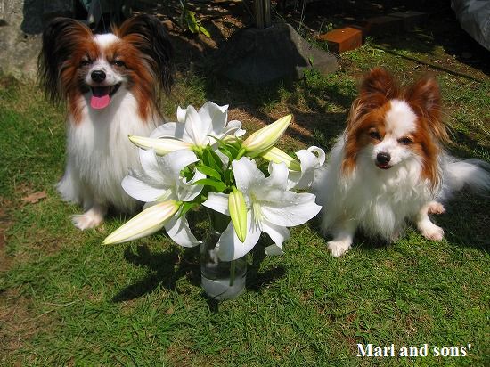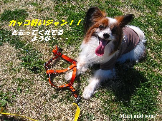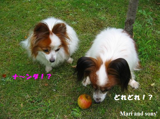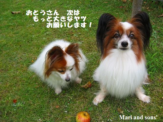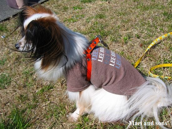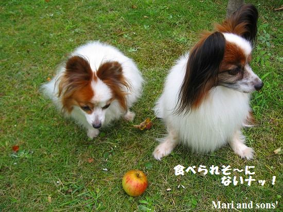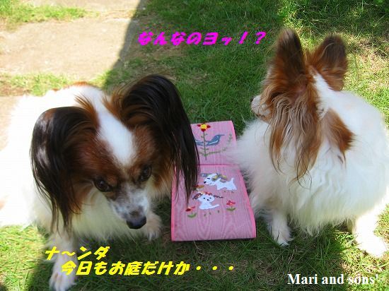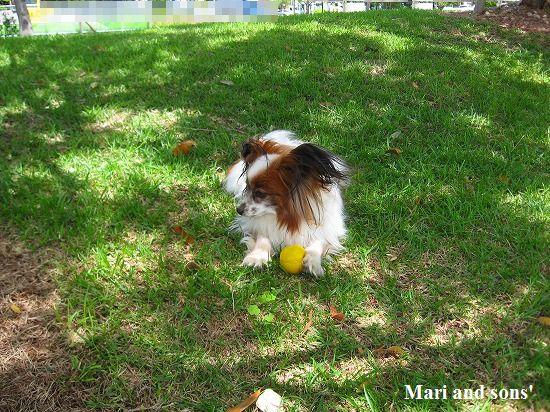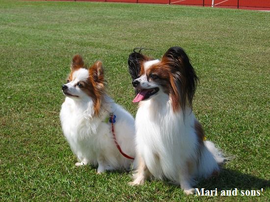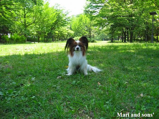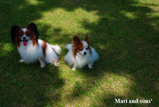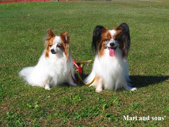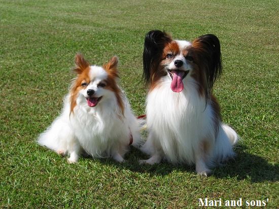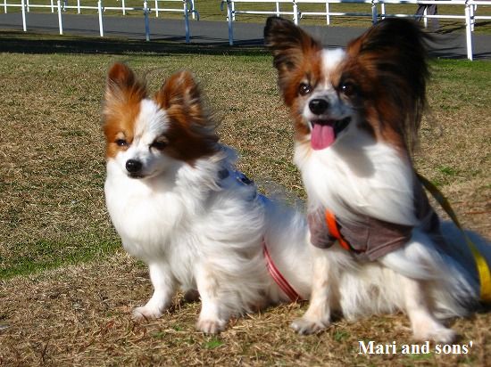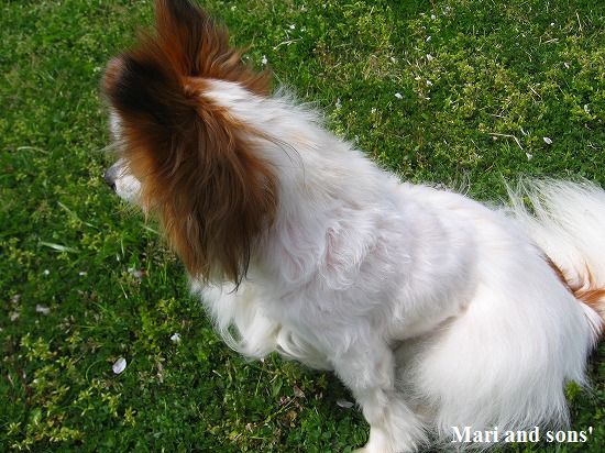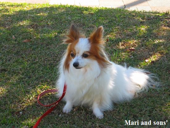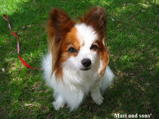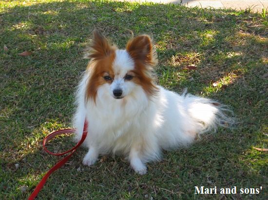 このとき 後ろからお散歩仲間の白黒パピヨンが近づいてきたようで まりは目聡く見つけた様子が分かります さて 少しは康太のこともお話しておきたいと思います |