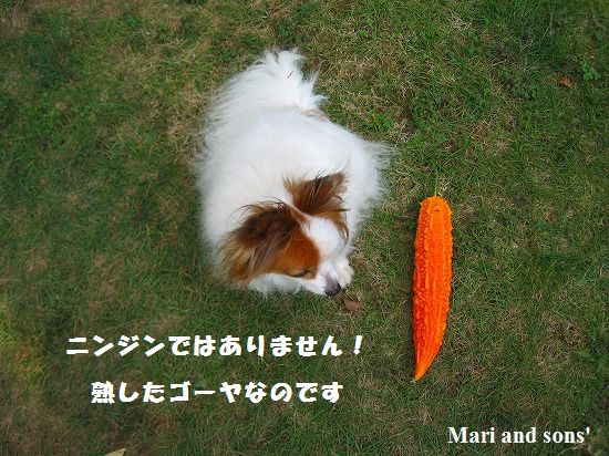 先月には ゴーヤが大きく育ったとお知らせしましたが あれから毎日一本づつ取れるような状況で 毎日何がしらかのゴーヤ料理が食卓にのぼる毎日が続いています そんなものの一本が この様に鮮やかなオレンジ色に染まったので目に留まりました 高枝切りバサミを使ってそ〜っと落とさぬよう収穫できましたので 記念に背比べです |