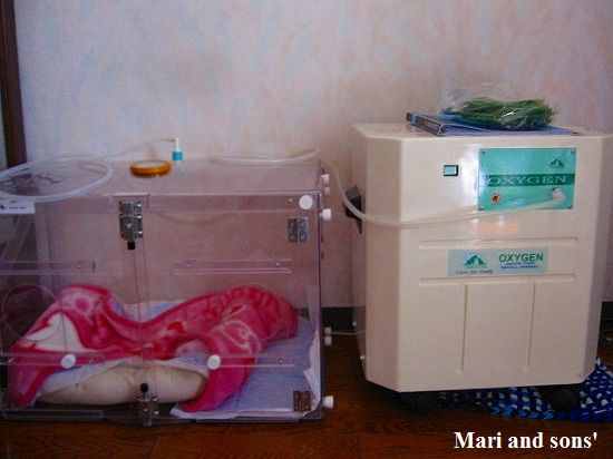 これは その酸素室のレンタル品です まりが退院するに当たり 自宅で対応できるように業者を探して借りたものです 病院で使われていたものとだいたい同じものだろうと思います