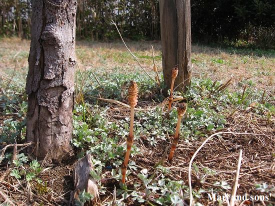 そんなこんなで康太も出かける機会が減っていましたが 久しぶりに散歩に出ると いつもの歩道の脇に・・・・・ そうです 土筆が出ていたのです もう胞子を飛ばそうと笠が開いているものも多く見えますので盛りはもう過ぎたようです 少し御無沙汰している間に季節がずんずん進んでいたのですネ |