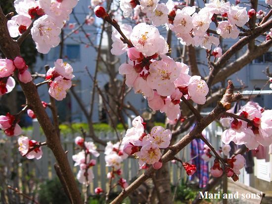 我が家の 猫の額に植わっている杏に花が咲いたのです |