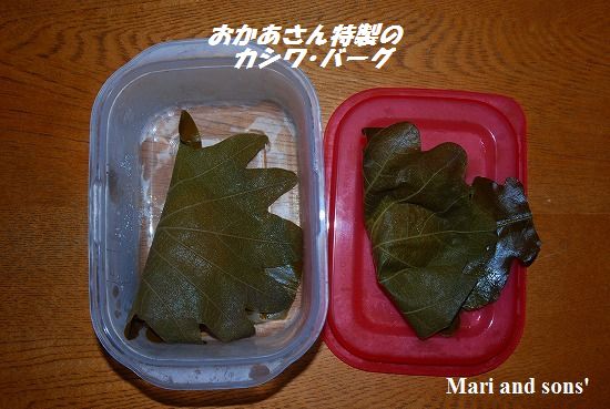 五月です ということで二人におかあさんが 柏もち ならぬ カシワ・バーグを作って子供の日のお祝いです |