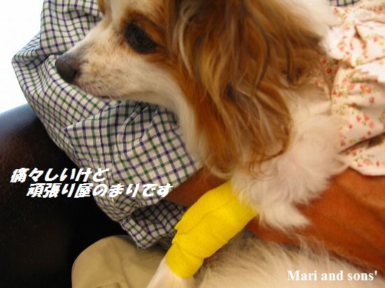 まりは真に健気で こんなになってもグズらないのがありがたいことです 家では結構ぐずるのですが・・・・ |