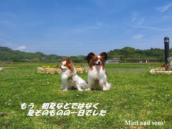 そんな訳で その日の帰りに 直ぐお散歩に出掛けました この日は快晴に恵まれて まるでまりの快気祝いの様なお空でした |