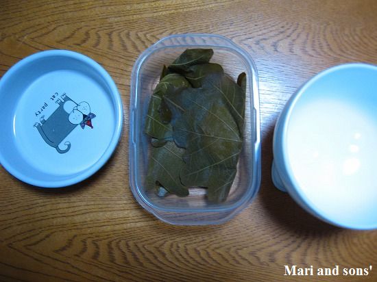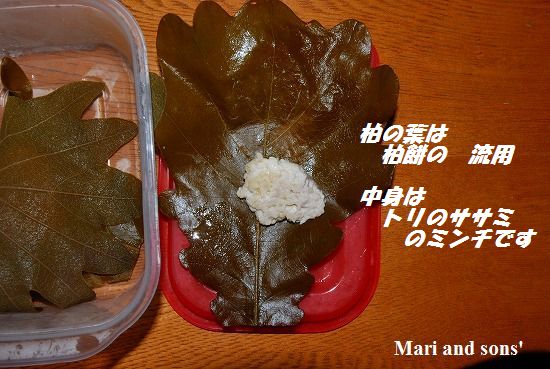 実態は おとうさんたちが食べた柏餅の柏の葉を流用して ササミをミンチにして蒸し揚げたものです 二人とも もうこのトッピングが食欲増進剤になったみたいでご飯が進みます |