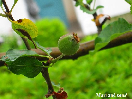 そんな季節の変動を感じたのか 二つ実を生らせていたリンゴの陸奥ですが一つはお盆前後に そして残りの一つが先日の雨の後に落果してしまいました |