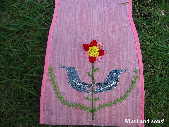 これが 上の部分です お花に停まる 二羽の鳥 おばあちゃんの洒落でしょうか これがホントの ”チョウチョウ” !? |
