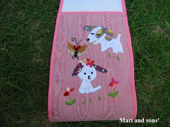 そんな折 おばあちゃんから封書が届きました 少し分厚いナァと思って開くと そこには 手作りの布製のトイレットロール・ホルダーが入っていました |