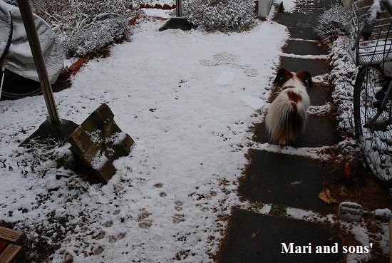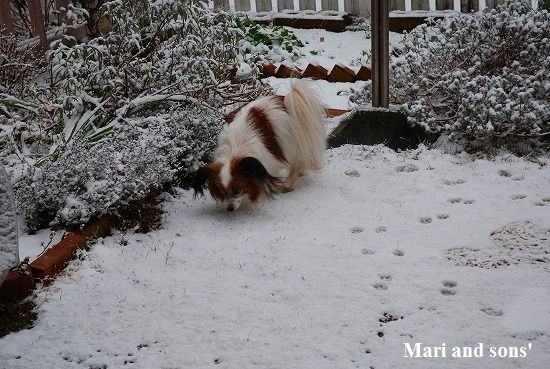 まりなら 嬉しそうに 確かめるように雪の中を歩いたのでしょうが 康太は寒いのが苦手!! 寒いからねェ 家の中で温ったまろ〜 |