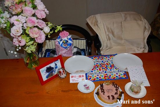 世間がお盆休み9連休が始まったと云っている一日 全員八月生まれの我が家で合同お誕生会をお祝いしました まずはテーブルセッティング |