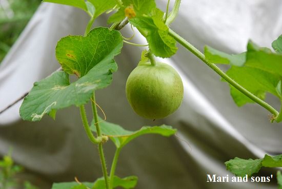 先月あせって熟す前に収穫してしまったメロンですが 知らぬ間にもう一つ受粉しておりいつの間にかこれほどの大きさに育っていました |
