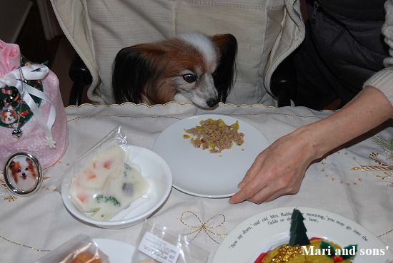まりちゃんも健太くんもテーブルに並んでお裾分けをもらいます |