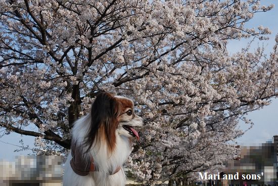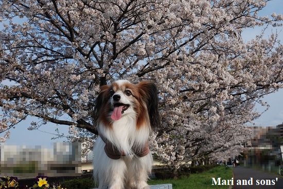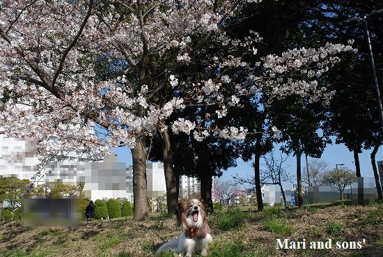この日は桜が咲き始めて七分咲きほどになっていたのでカメラを持参し康太と一枚です |