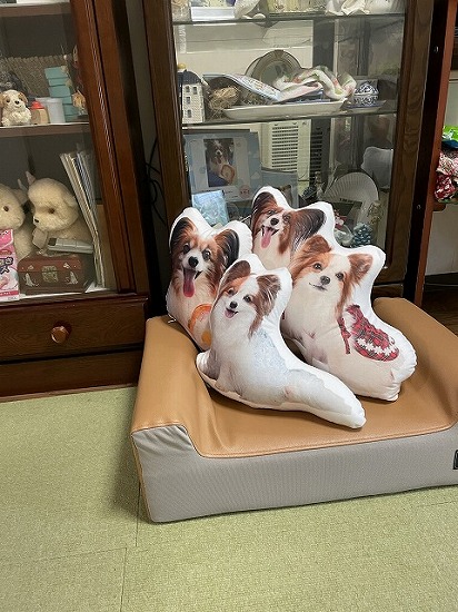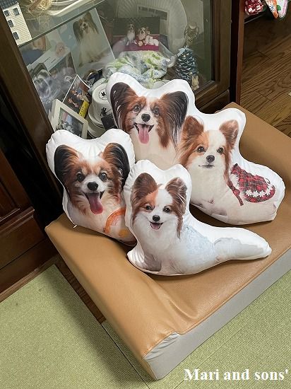 みんながいなくなって家の中が静まり返っているので おかあさんネットで探してクッションに写真をプリントする業者を見つけました |