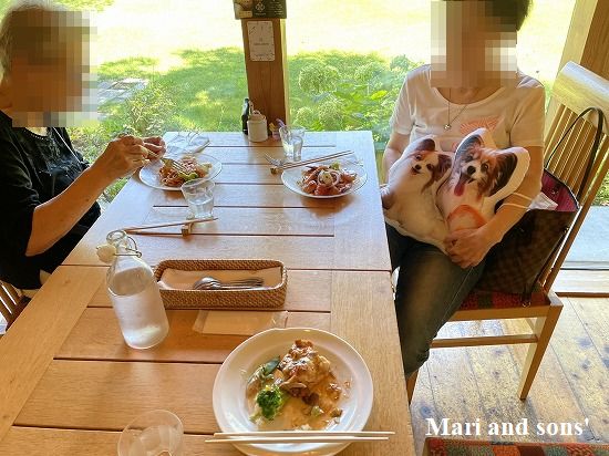 一番奥にドッグランというわけではないでしょうが ワンちゃん同伴可能なテラス席を備えたお店の横に人工芝を引き詰めた休憩所があり食事の後おかあさんの戻り待ちの間ここでおとうさんとお昼寝を楽しみました 穏やかな日差しでしたが少し風が強くおとうさんはコックリできなかったそうです |