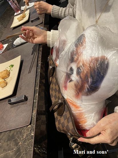 | 鉄板が目の前なので 二人には見栄えは悪いのですが ビニール袋で保護させてもらいました これで安心 |