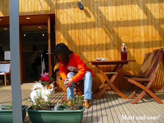 まりを遊ばせてそのあと覗いてみると レストランにはテラスが付属しているようです 伺うとペット連れでもテラスならOKとのことです |