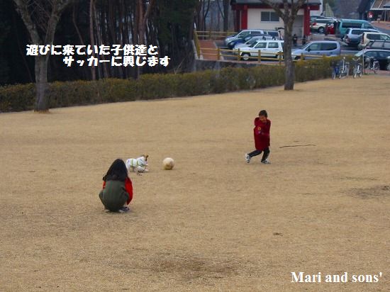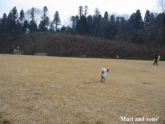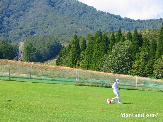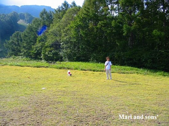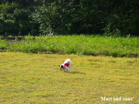 戻る道すがら広い芝生が目に入りましたので まりの運動をさせようと車を進めました |