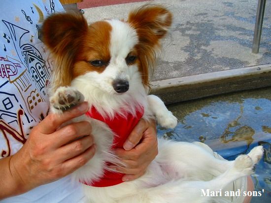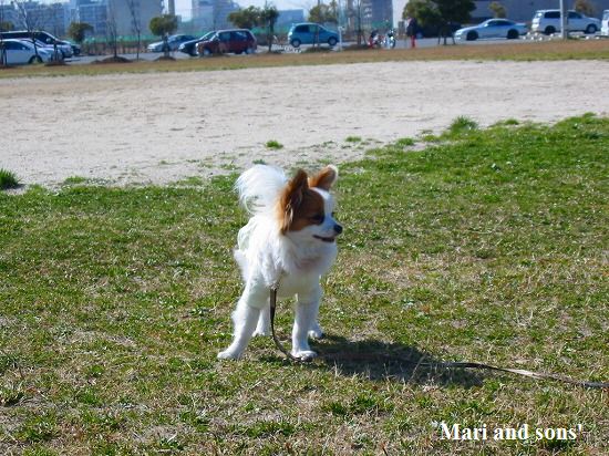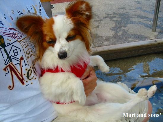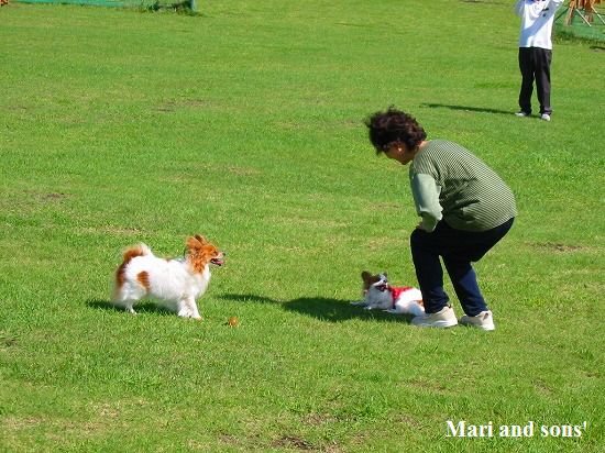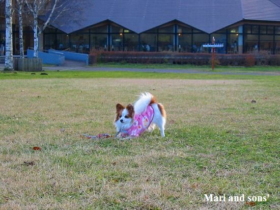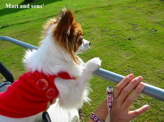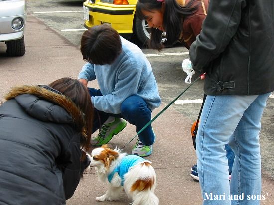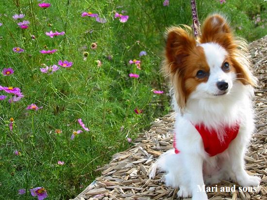 ここで昨日夕方出会ったパピヨンに再会しました 聞いてみたらなんとこの子の名前も同じ"まり"でした |
