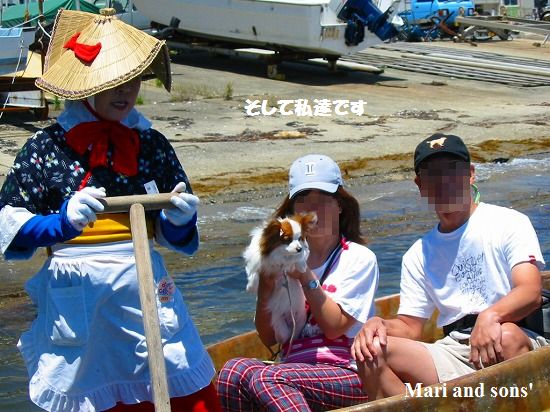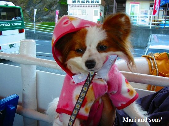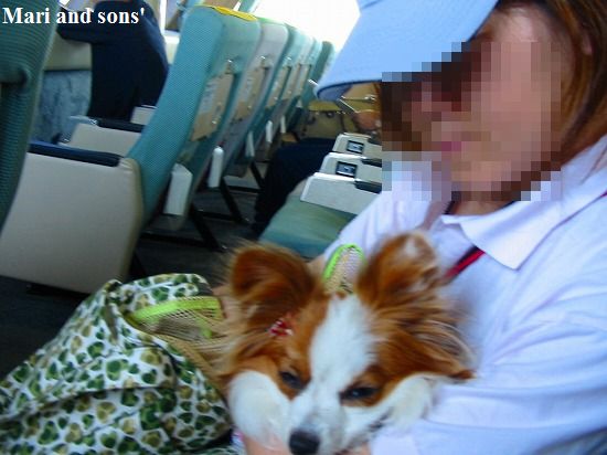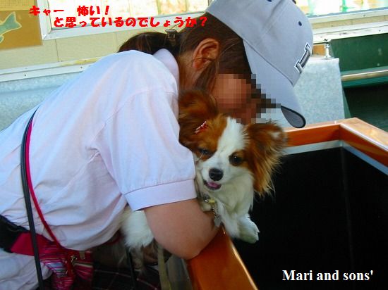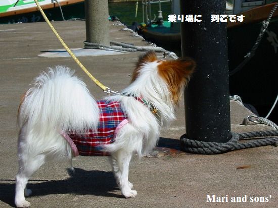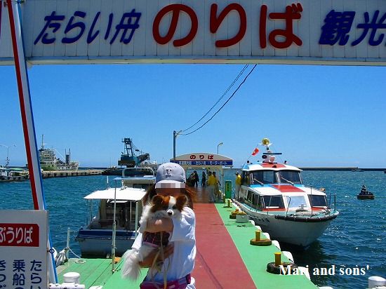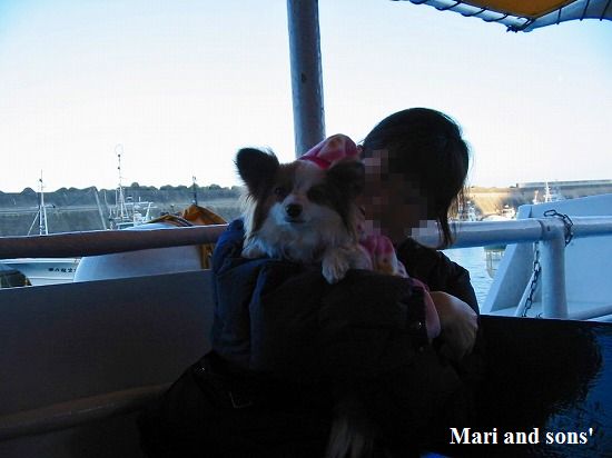 帰りのフェリーは途中で何かにぶつかった衝撃を感じ暫く停船したので心配しましたが 問題なかったようで運行を再開しました まりはお母さんに"ありがとう"のペロペロです |